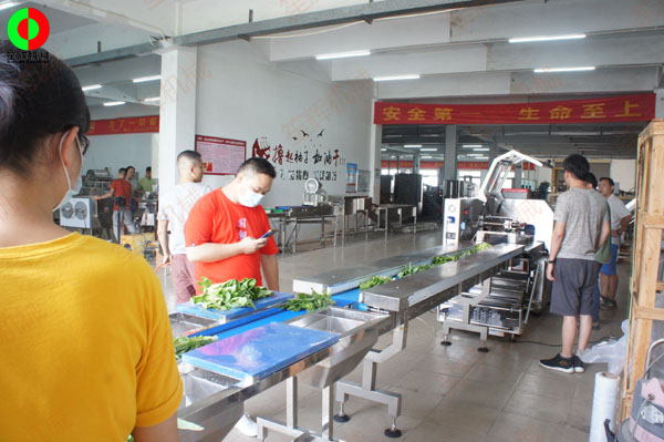 廣西客戶定制的蔬果包裝生產(chǎn)線于近日生產(chǎn)完畢,來廠現(xiàn)場測試驗收!蔬菜包裝生產(chǎn)線主要由平面分選臺-枕式包裝機-平面質檢輸送臺-金屬探測儀等設備組成蔬果深加工處理生產(chǎn)線。生產(chǎn)線它適用于適用于各種生鮮配送中心,蔬菜超市,生鮮店的包裝及金屬檢測剔除,如:上海青、韭菜、青瓜、茄子、番薯葉、葉菜、青菜、生菜、辣椒、白菜、散菜等各類蔬菜的包裝質檢。