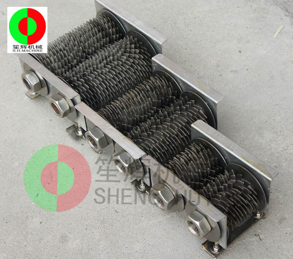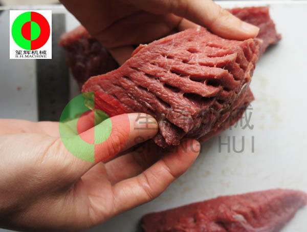 - 產品優勢: 機器原理:通過帶齒刀組壓切肉塊,能放大肉片尺寸及松肉效果。底座帶輪,移動靈活,使用方便。刀具采取外置懸掛式設計,傳動部分由皮帶和摩托鏈條二級變速,操作簡單。松肉刀片用不銹鋼材料制造,硬度大,經久耐用。
