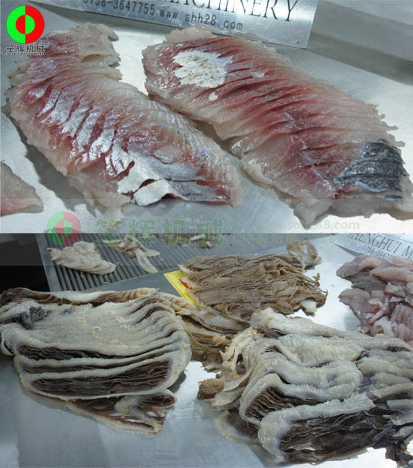 、多功能斜切魚片機同時可以切草魚、黑魚等多種魚肉和雞胸、鴨胸、里脊肉片、牛肉、羊肉等無骨肉,切出的肉片整齊美觀,容易包裝,加工效率高,安*全,省人工,是超市   火鍋店、魚片批發商、肉制品加工廠等理想設備。